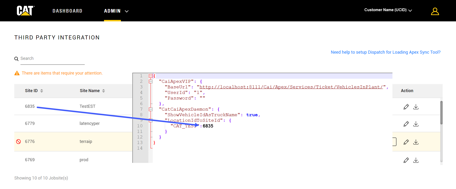 Note: The Service Technician has to update the required information in config.json file. The Dispatch for Loading Apex Sync Tool is installed on the same computer in which Apex is installed.